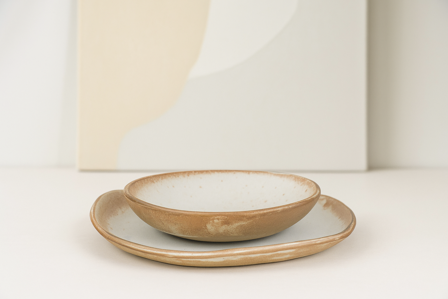 Nossas peças resultam do trabalho com o barro modelado e queimado duplamente. Tomamos terra, água, ar e fogo, os transmutamos e criamos peças que transformam experiências cotidianas em extraordinárias.